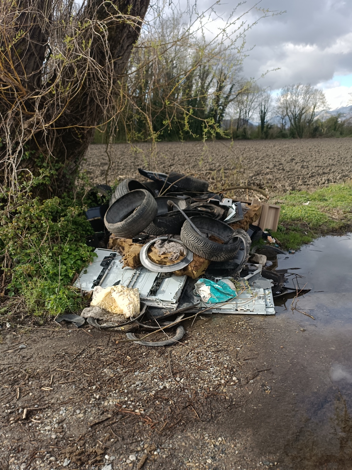 Dépôts de déchets sauvage importants pneus bois déchets divers.