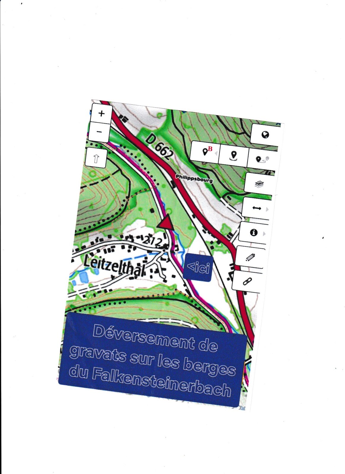 Déversement de gravats sur les berges du Falkensteinerbach.