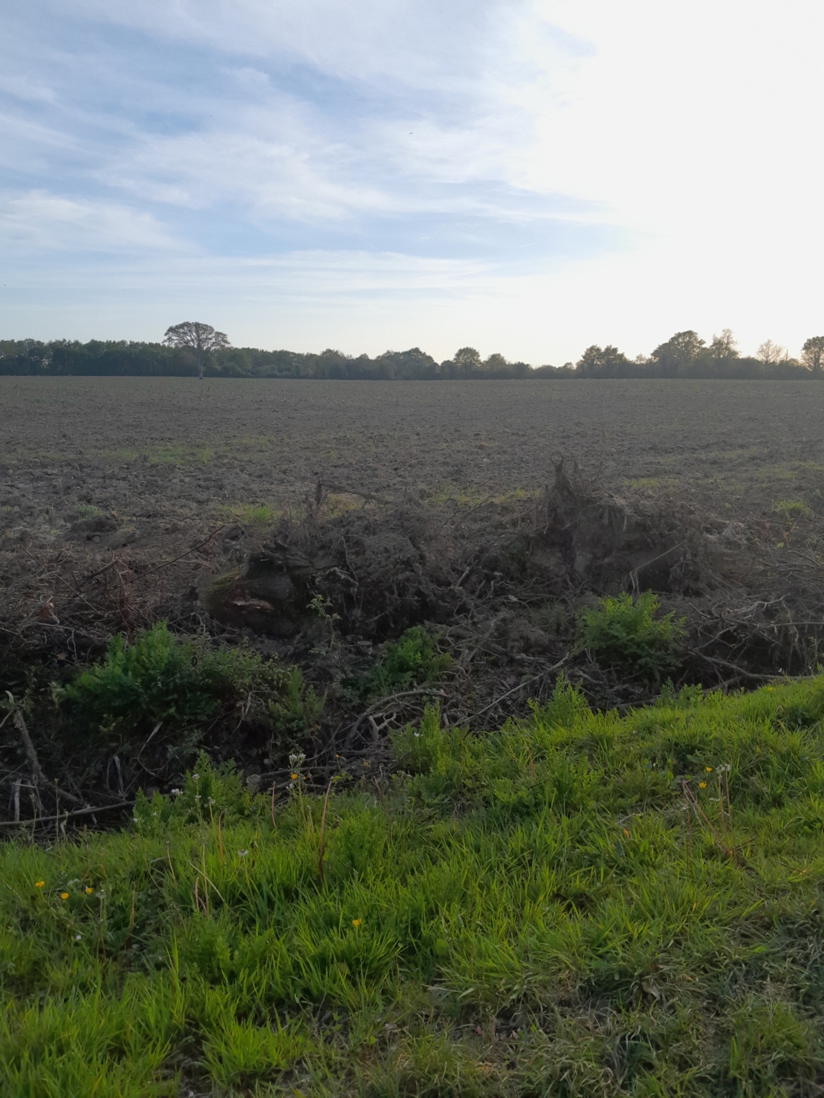 coupe à blanc d'une haie ancienne de chênes et ensuite arrachage des souches