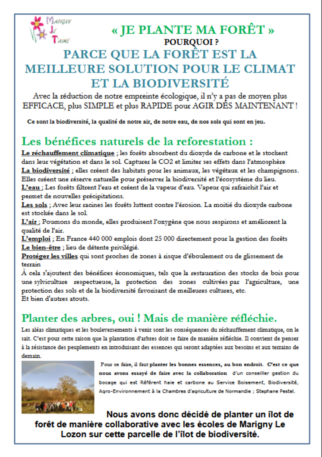 Ces plantations ont été faites en partie avec les écoliers de Marigny.
