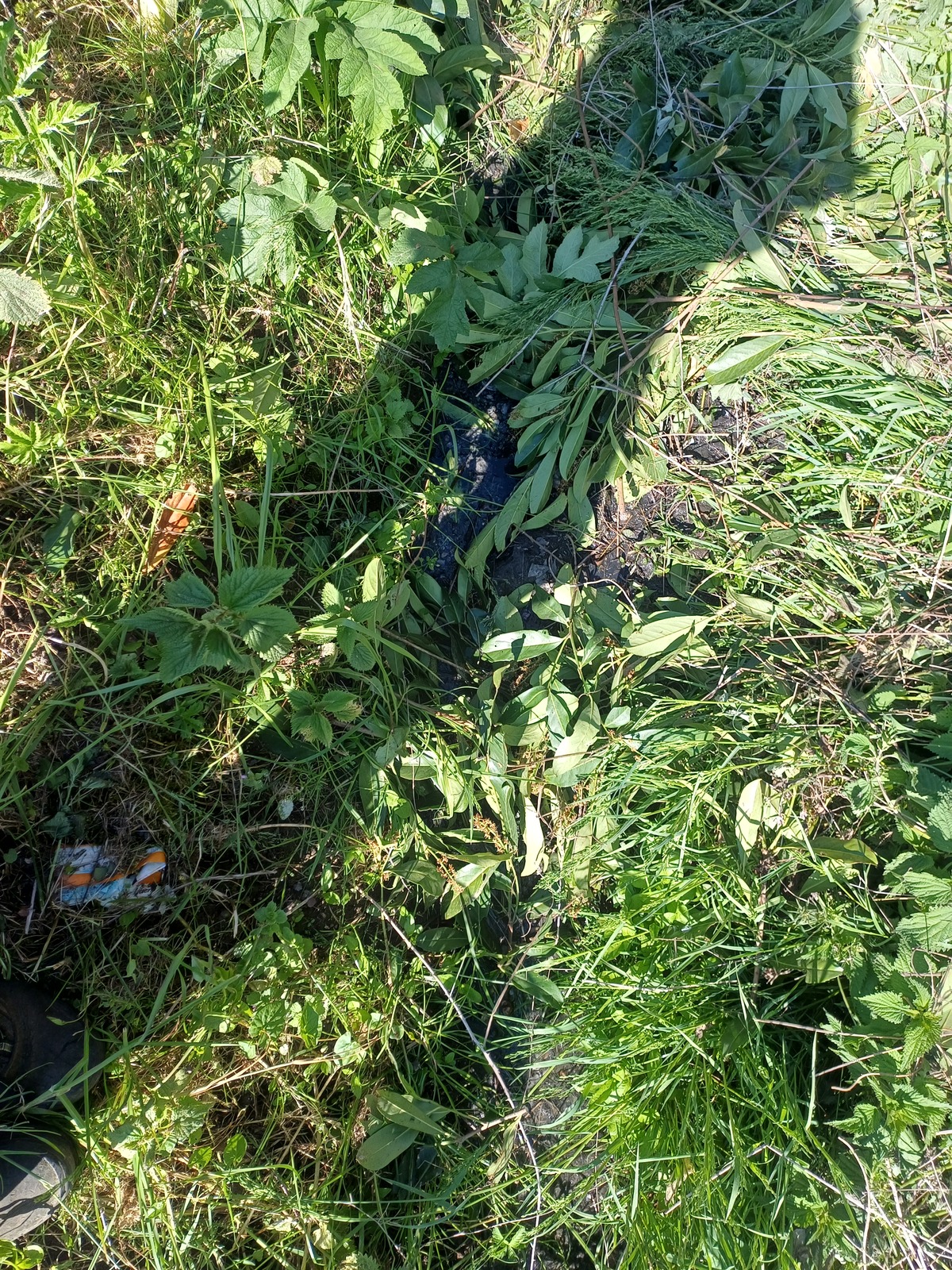 Des quantités importantes d'huile de vidange sont déversées dans le fossé qui rejoint en contrebas le ruisseau alimentant vraisemblablement l'étang communal.