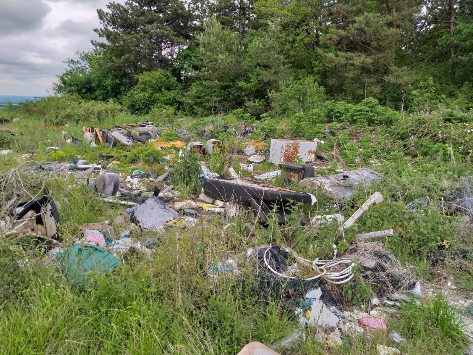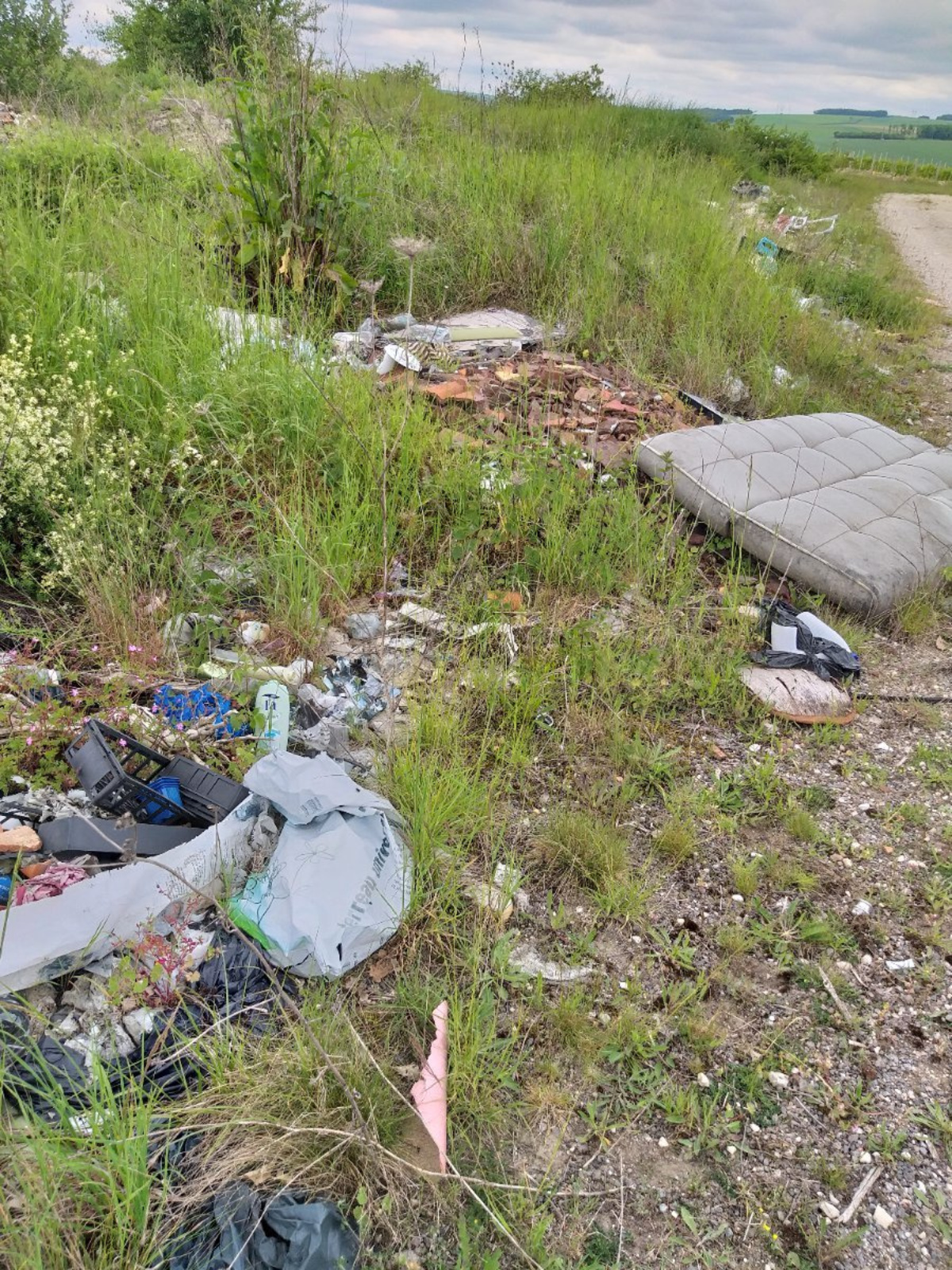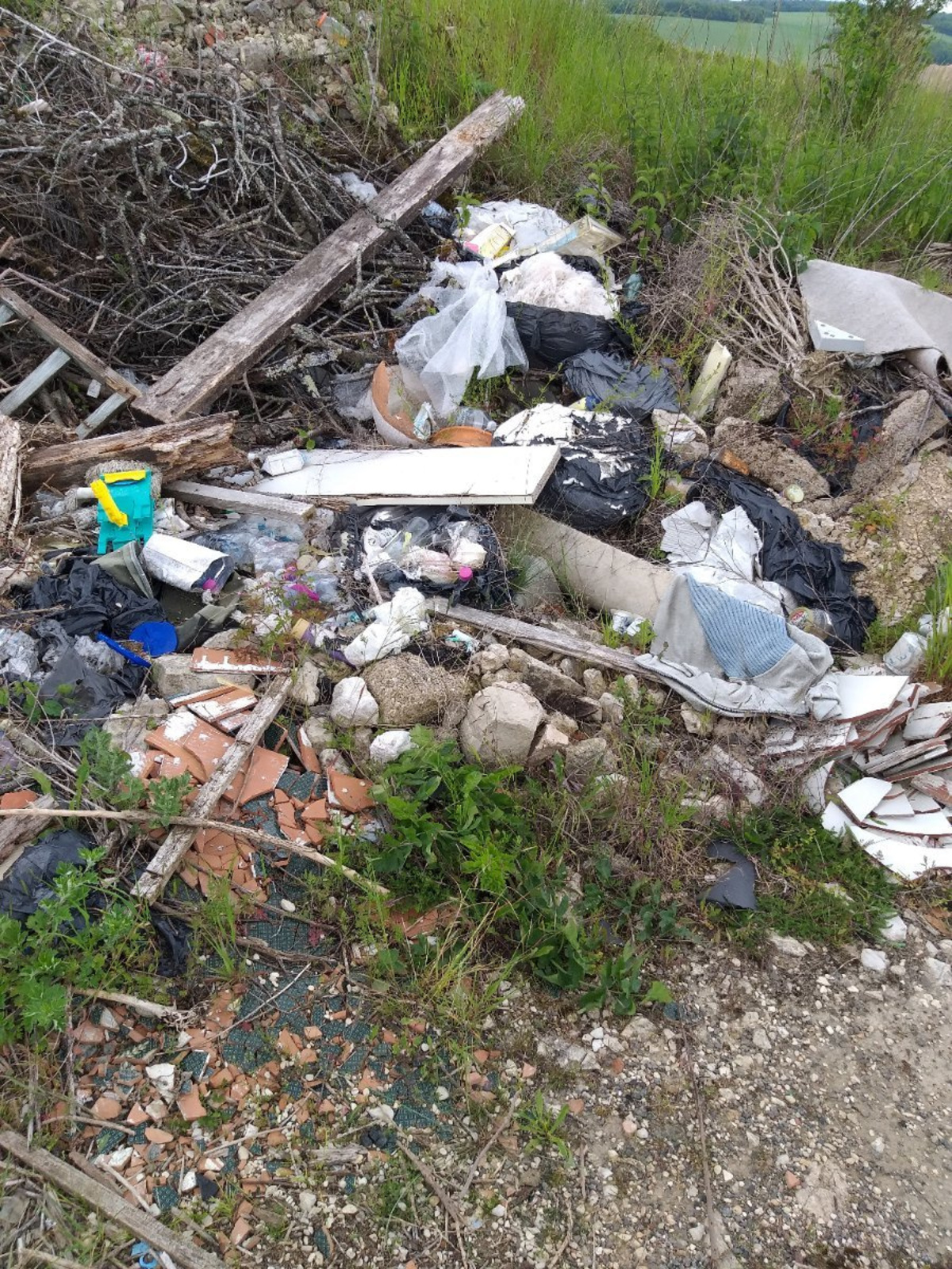 Décharge sauvage ( verre, plastique, métaux ...). Site aujourd'hui réhabilité en parc photovoltaïque.
