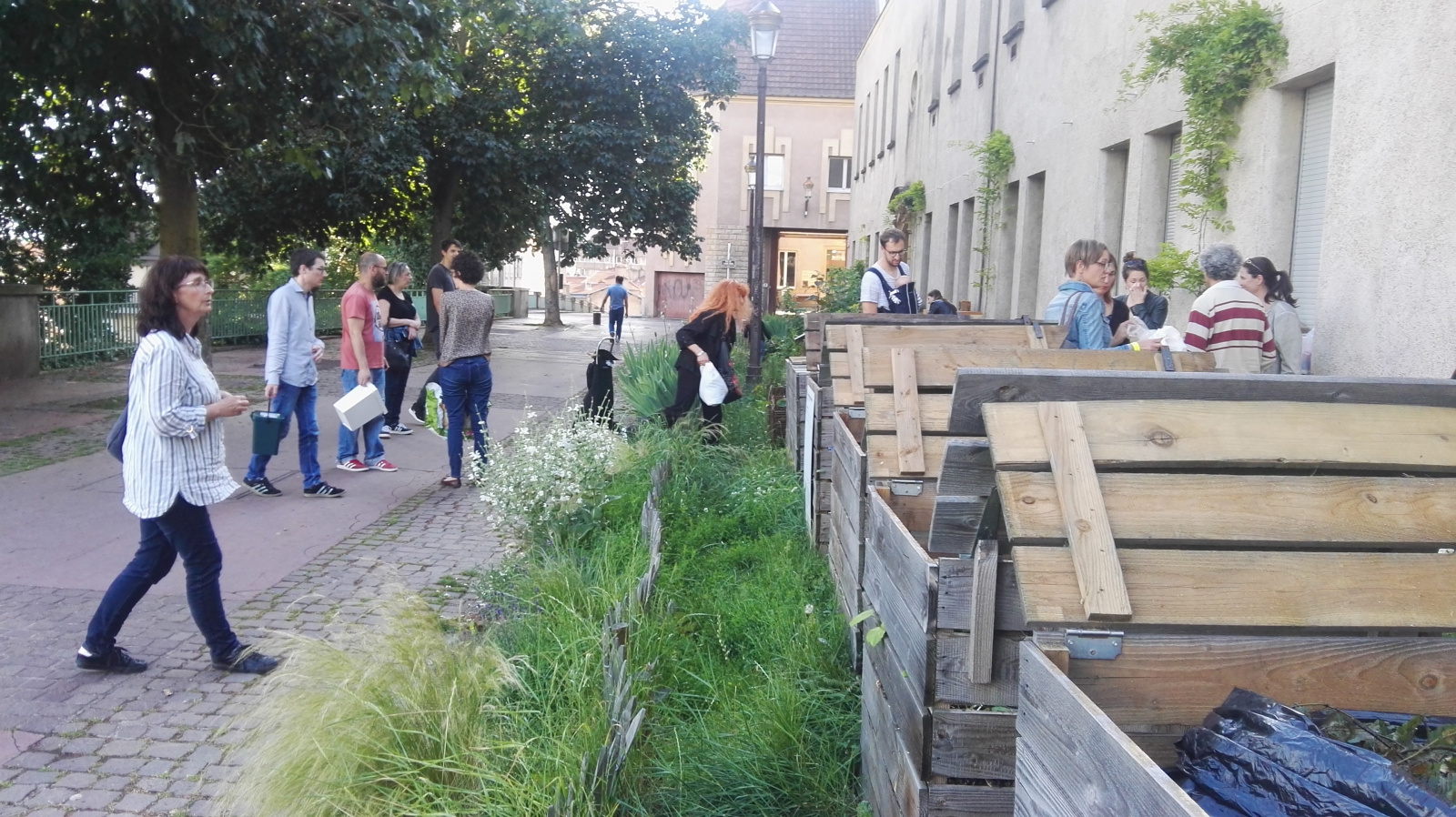 L'association du quartier Sainte Croix OPPIDUM et l'association Les incroyables comestibles ont installés tout d'abord des jardins partagés dans la rue des murs. Puis un site de compostage de quartier est venu rejoindre les jardins. C'est un espace convivial et de partage.