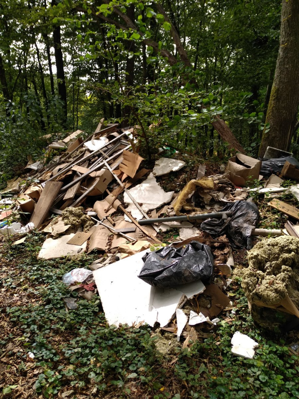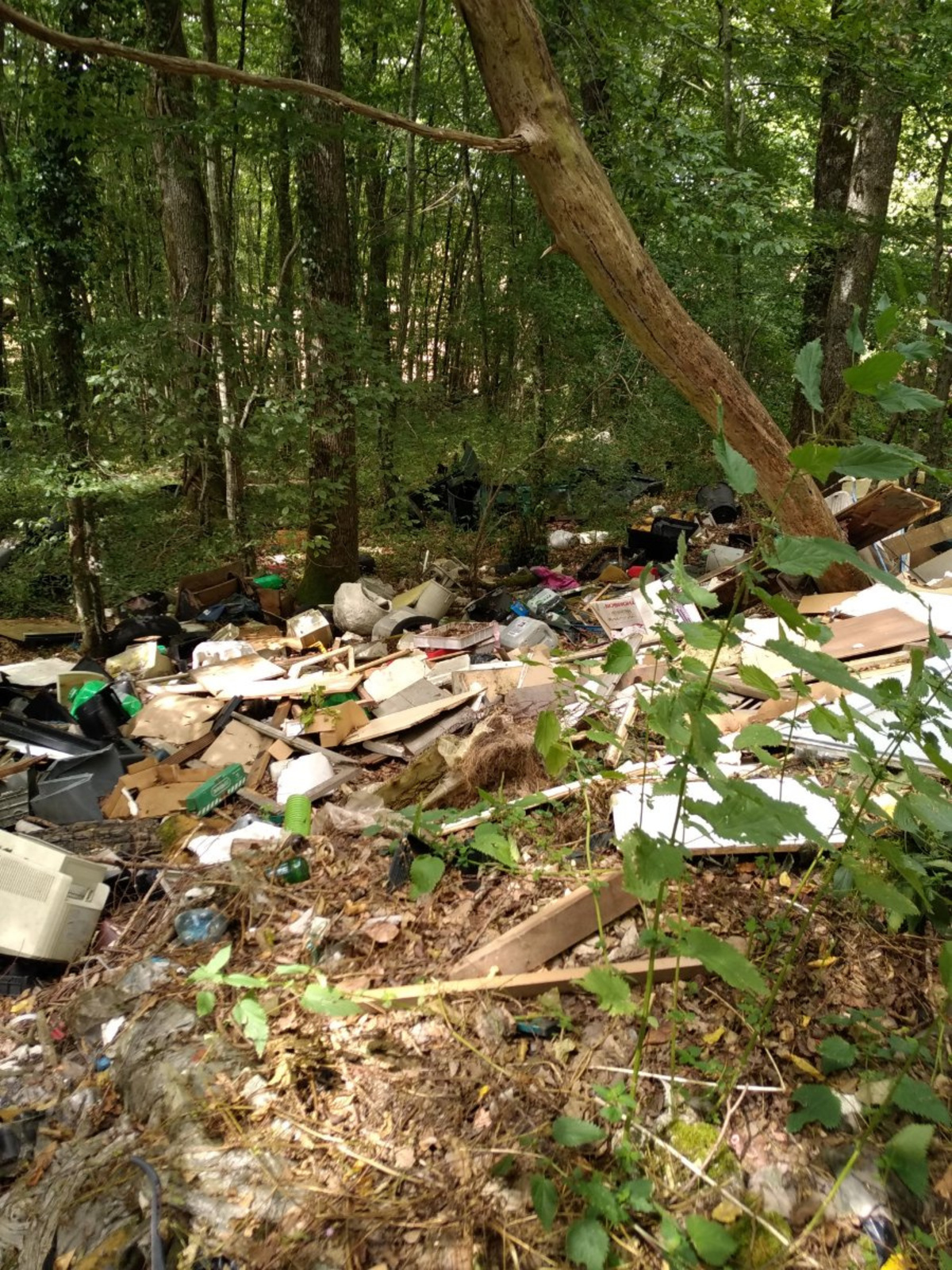 On voit ici des déchets de tout genre, que ce soit des déchets ménagers, des cartons, des pneus, du matériel informatique, des déchets de travaux.