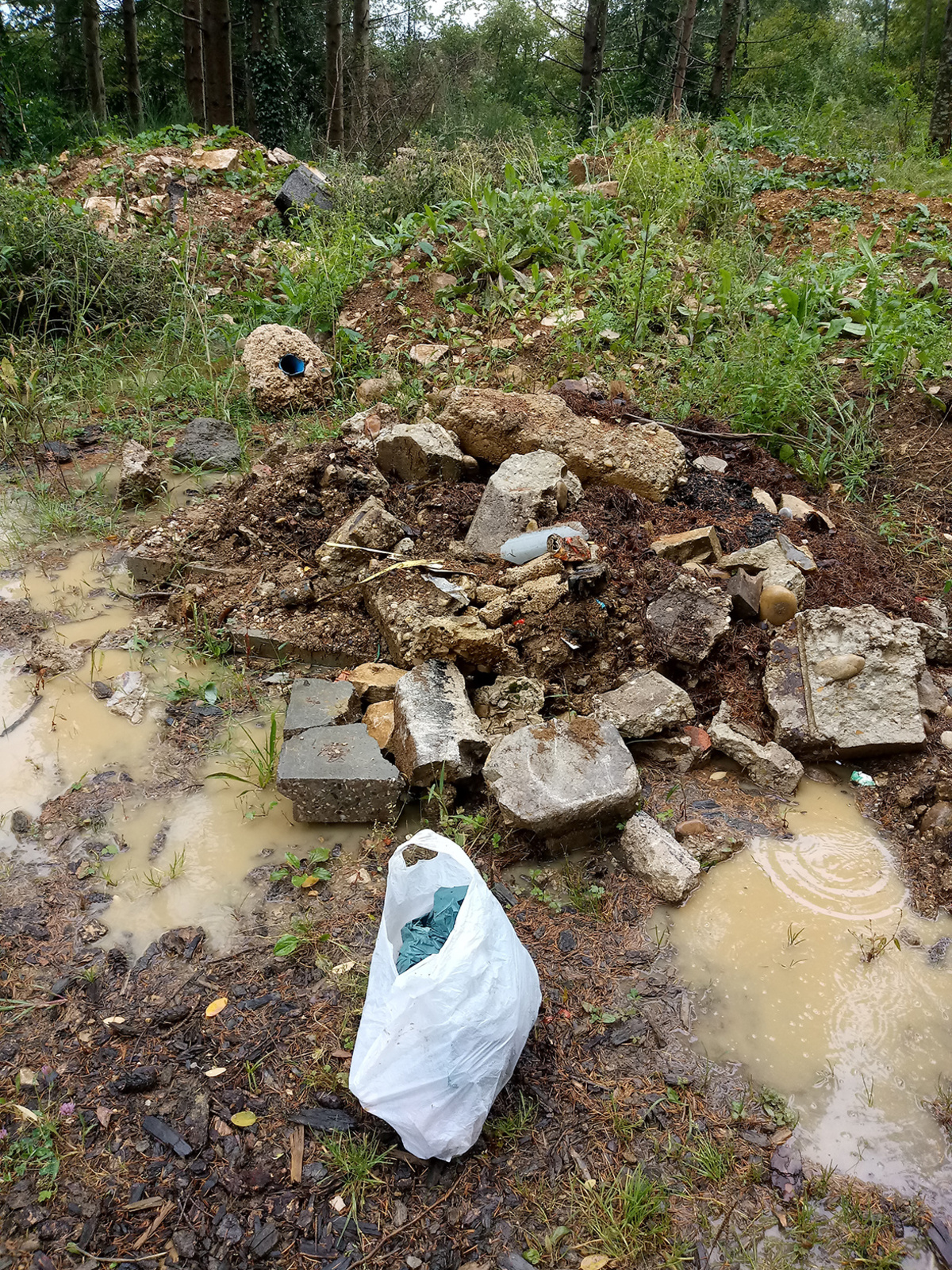 sur le Chemin boisé, près de l'Aubépin, le long de la D3, présence de divers tas de déchets :