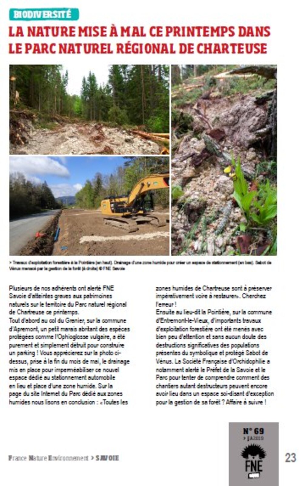 Au lieu-dit la Pointière, sur la commune d’Entremont-le-Vieux, d’importants travaux d’exploitation forestière ont été menés avec une abatteuse forestière et sans aucun doute des