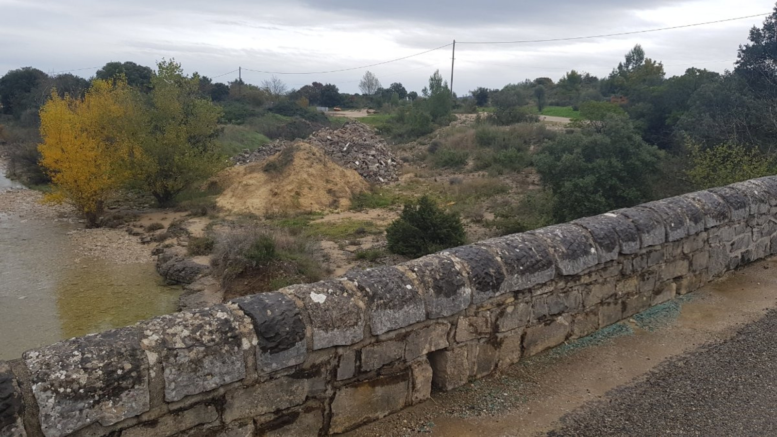Dépôt sauvage de déchets à proximité d'un cours d'eau : dépôt important de gravats dans le lit majeur.