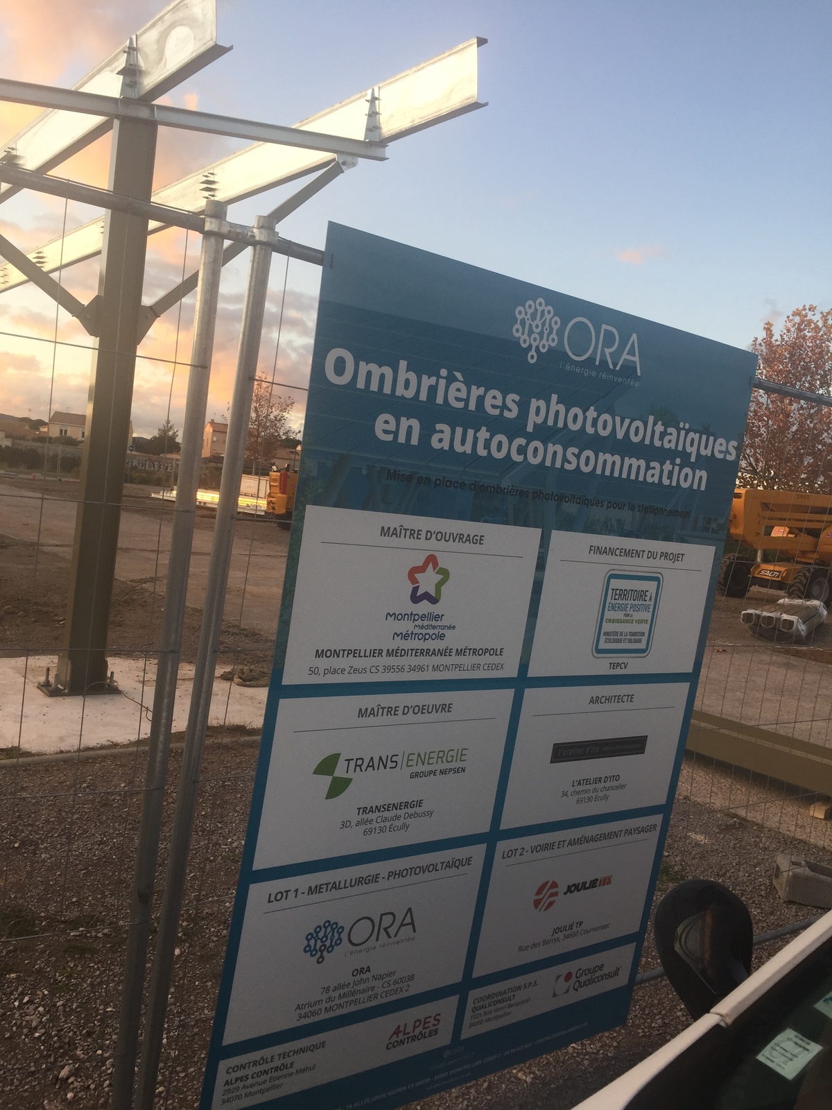 Installation d'ombrières photovoltaïques sur le parking de la piscine Poséidon.