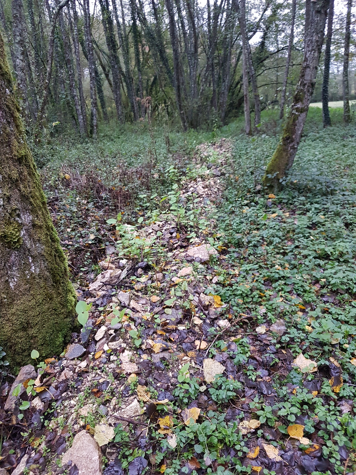 Rebouchage à l'aide de gravâts de petits rus sur une zone de protection pour l'écrevisse à pied blanc.