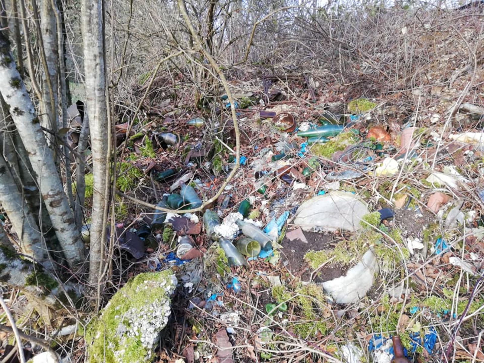 enfouie sous la végétation une ancienne décharge est réapparue en bord de route suite à l'élagage et au défrichage du site,