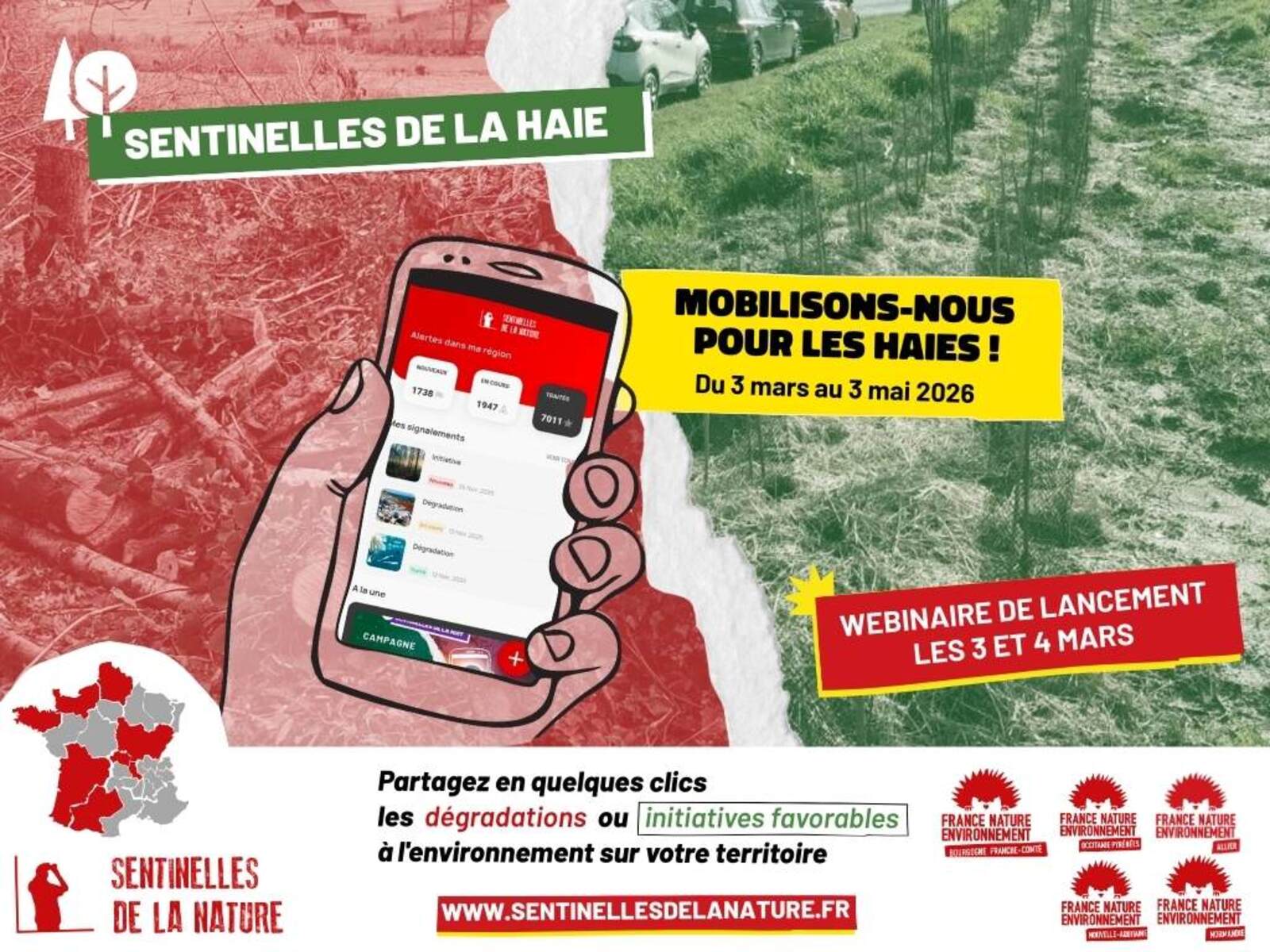 Ce printemps, durant la période de reproduction de nombreux animaux, le réseau associatif FNE dans plusieurs régions vous invite à l'action pour la préservation des haies. Durant la campagne « Sentinelles de la Haie », du 3 mars au 3 mai 2026, toute personne peut participer en nous informant des initiatives favorables aux haies et des éventuelles atteintes.