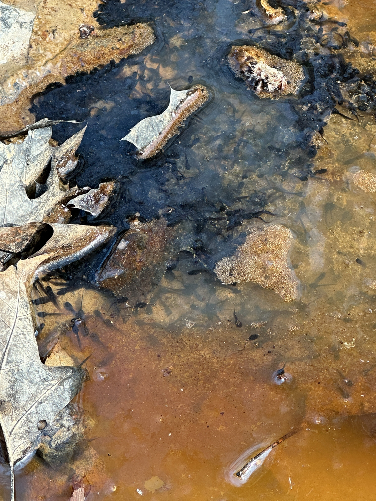 Comblement d'ornières ou se trouvent des grenouilles brunes et des crapauds communs