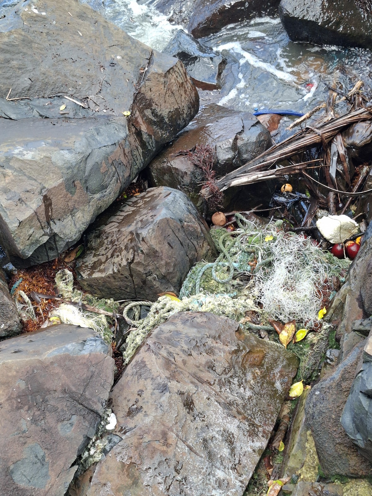 Des déchets de pêche (filets), des déchets plastiques et une zone de brûlage de déchets (avec restes de canettes et plastiques) ont été signalés sur l'Ilet La Mère. Des pêcheurs ont été observés jeter directement des morceaux de filets dans les enrochements autour de la jetée. Les filets peuvent finir en mer et piéger tortues, poissons et mammifères marins.
